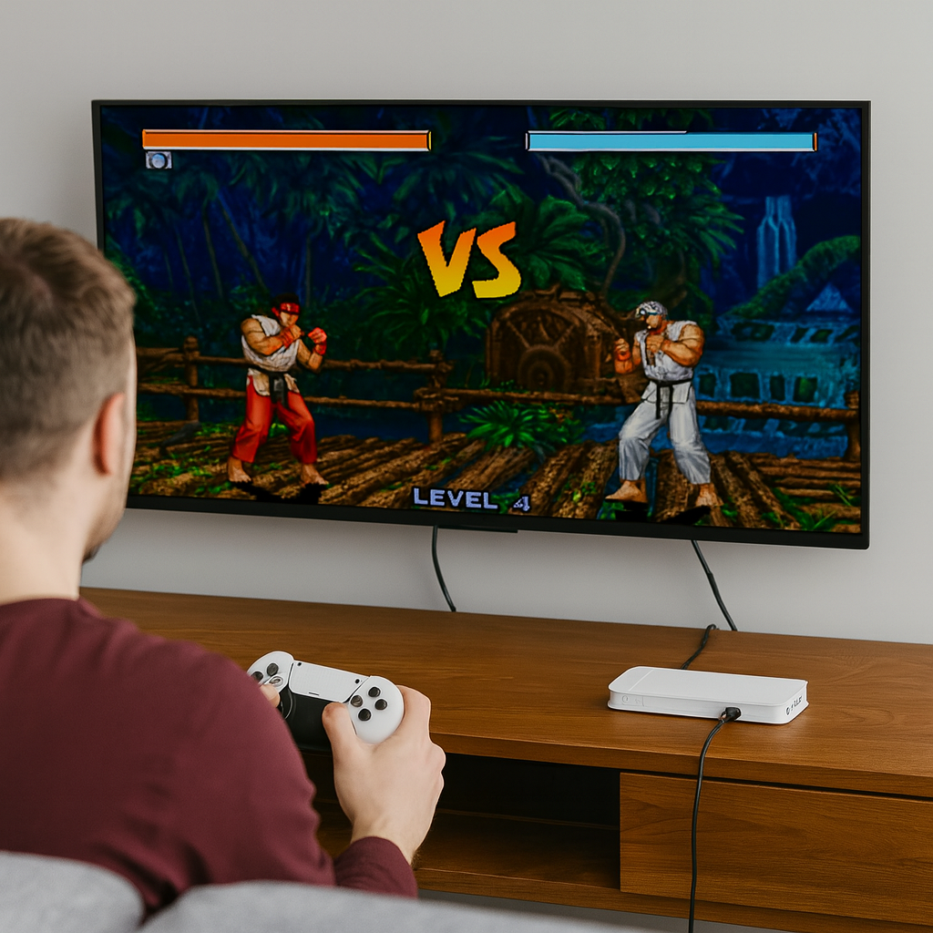 Dykk tilbake inn i spillverdenen med vår nostalgiske spillkonsoll – designet for deg som setter pris på klassikerne! M15 Game Console gir deg gleden av retrospill i en moderne drakt, slik at du kan gjenoppleve dine favorittøyeblikk fra PS1 i fantastisk 4K HD-kvalitet.